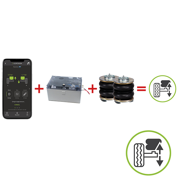 SMV E-Suspension Box με πακέτο Plus E-Trailer (για έλεγχο αερανάρτησης μέσω App) Με το πακέτο E-Suspension, μπορείτε να ελέγχετε την αερανάρτησή σας εύκολα και άνετα μέσω της εφαρμογής E-Trailer. Η εφαρμογή σας επιτρέπει να προσαρμόζετε τις ρυθμίσεις της αερανάρτησης ανά πάσα στιγμή, ώστε να εξασφαλίζετε τη βέλτιστη οδηγική άνεση και ασφάλεια. Το προϊόν παρέχεται από την SMV με το πακέτο εκκίνησης E-Trailer, ώστε να μπορείτε να χρησιμοποιήσετε ολόκληρη τη σειρά E-Trailer. Η ανάρτηση E-Suspension είναι εξοπλισμένη με μία βάση γενικής χρήσης που καθιστά εύκολη την τοποθέτησή της στο όχημα. Η εγκατάσταση είναι απλή: Το μόνο που έχετε να κάνετε είναι να συνδέσετε τους δύο σωλήνες του αεροσυμπιεστή και δύο καλώδια για τα ηλεκτρική τροφοδοσία. Είναι τόσο γρήγορος και εύκολος τρόπος ώστε να εξοπλίσετε το όχημά σας με σύγχρονη, έξυπνη αερανάρτηση.
